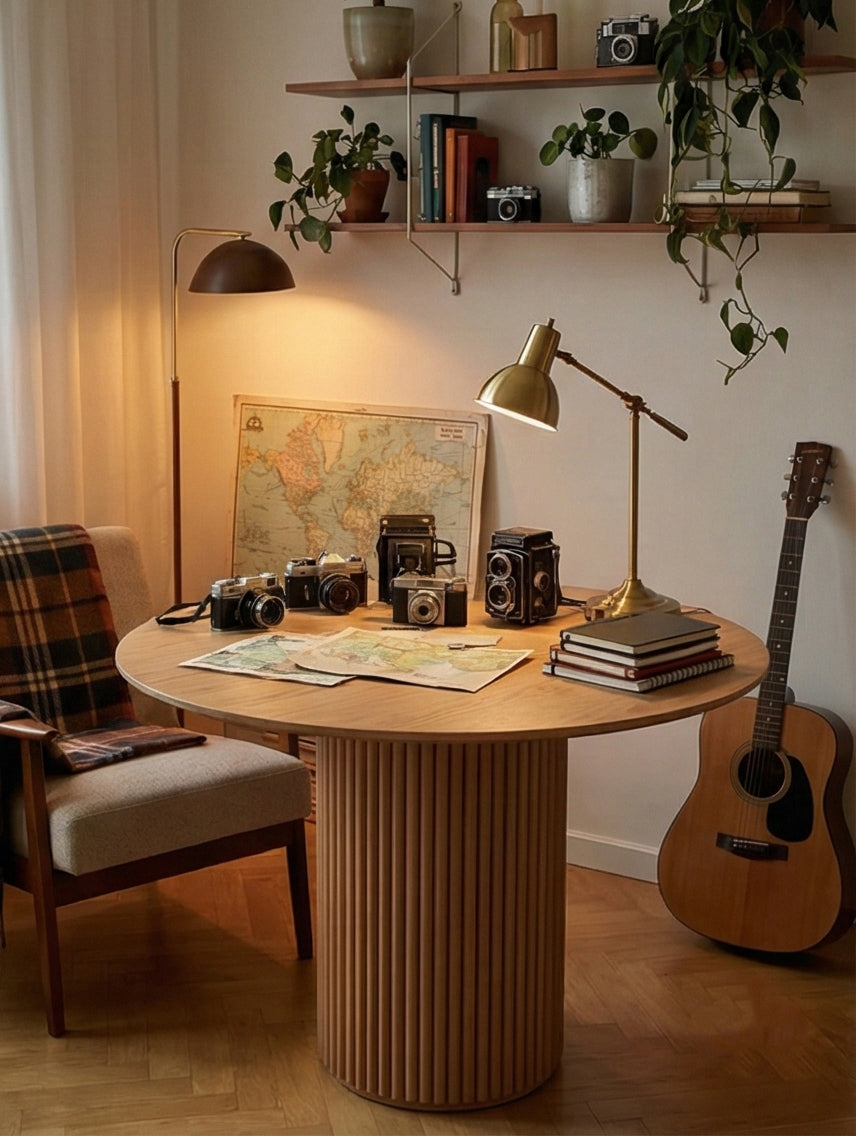 Inspired by timeless architectural forms, the Roman Column Round Dining Table features a sculptural column base that brings classic elegance into modern dining spaces. Its round tabletop encourages easy conversation and comfortable gatherings, while the pedestal design offers sturdy support and generous legroom. A refined centerpiece designed for everyday meals and elevated hosting.