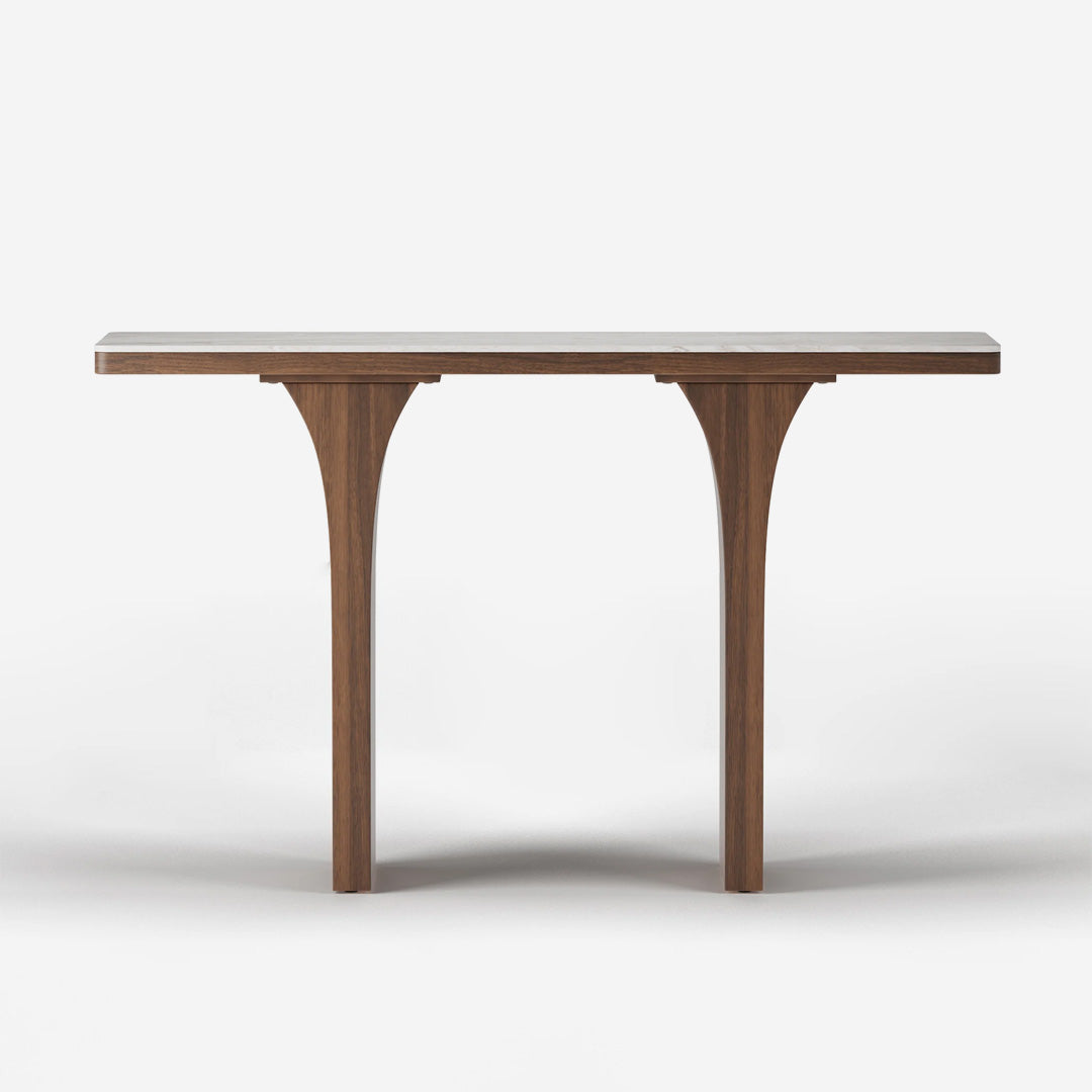 Featuring a graceful arched silhouette, the Arched Stone Slab Console Table brings a refined sense of elegance to modern entryway spaces. The soft curves create a balanced, architectural look while adding visual warmth and sophistication.